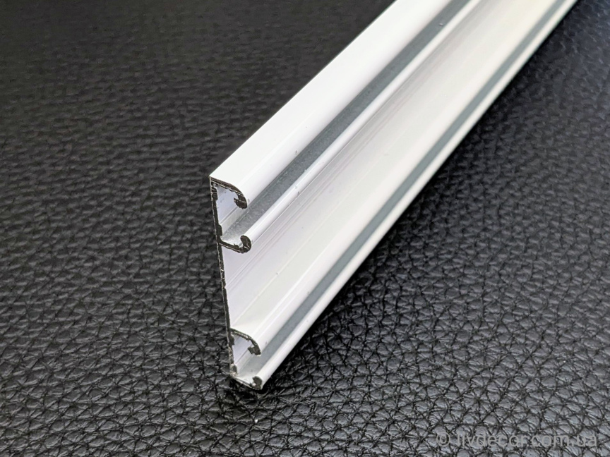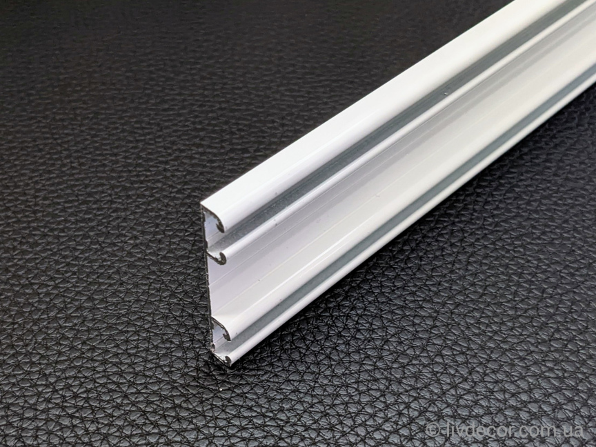 Алюмінієвий профіль (2-ряд) 7мм використовується для легких, середніх і важких штор, витримує вагу до 5кг. на м/п. Ширина 50мм, висота 7мм, відстань між доріжками 35мм.