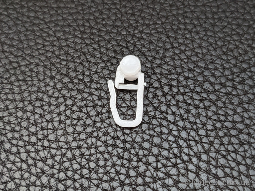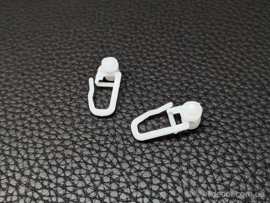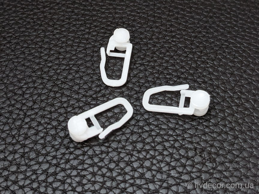 Гачок з роликом КСМ пластиковий для надійного і непомітного кріплення шторного полотна до стельового пластикового карниза. Забезпечує легке і безшумне ковзання карнизом. . Стандартний розрахунок необхідної кількості гачків – 1шт на кожні 10см.